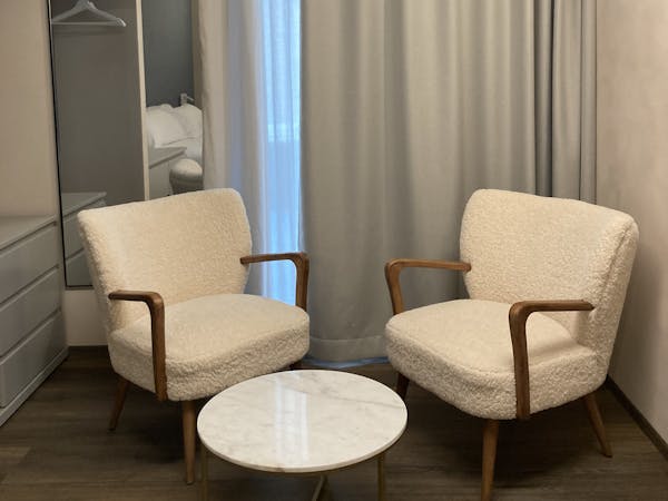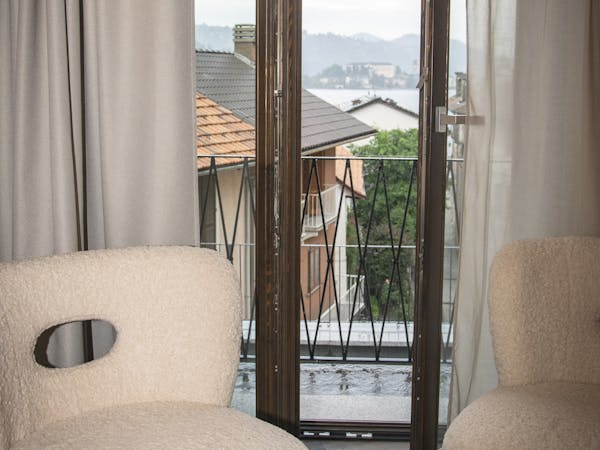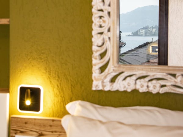 Spacious and cozy room, with a large bathroom with shower, three balconies with views and private sitting area overlooking the beautiful Lake Orta. The room is equipped with: